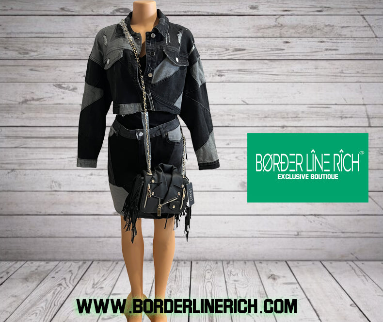 PLUS SIZE CROPPED LENGTH PATCHWORK DENIM SKIRT